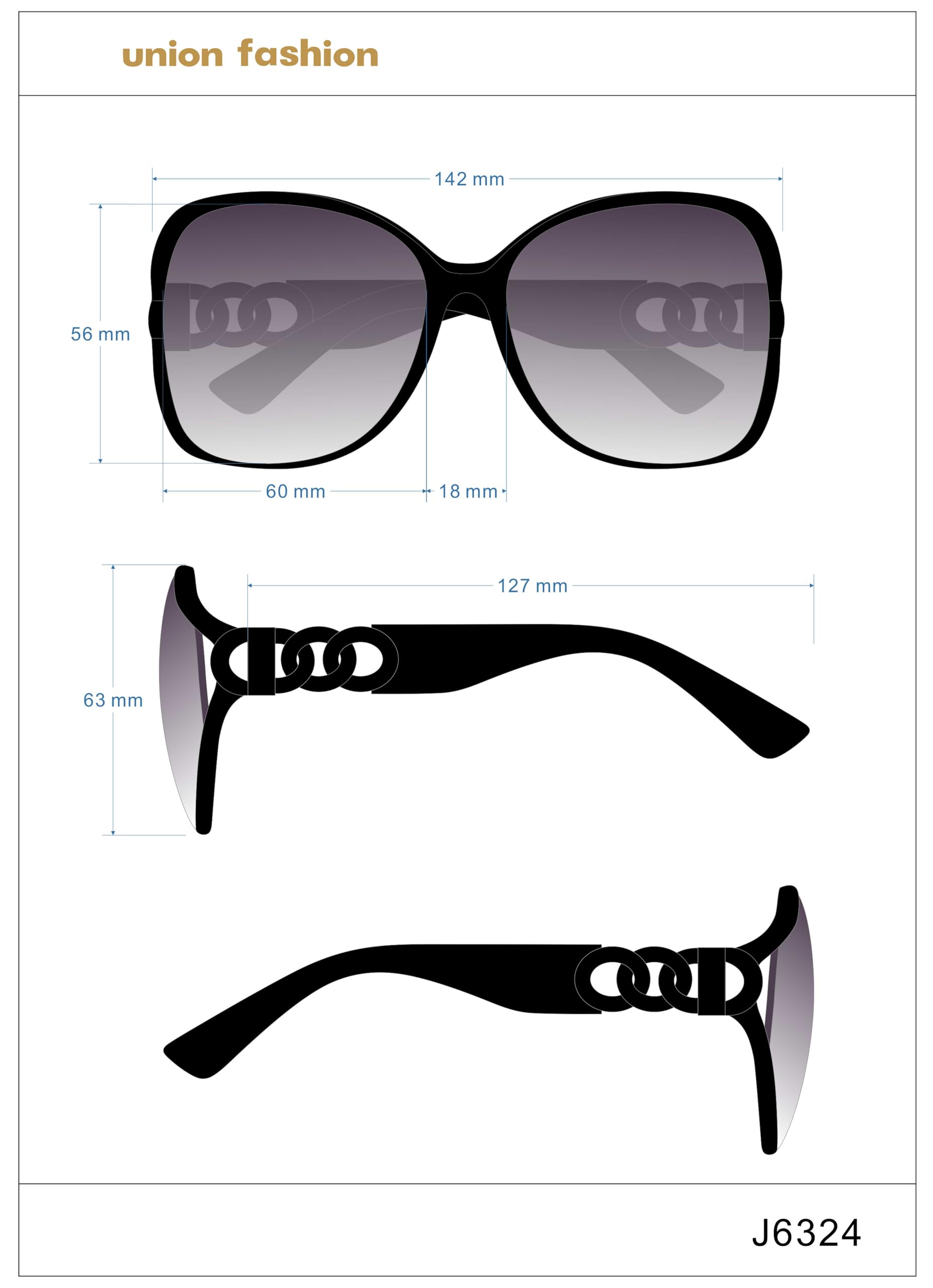 - Comfortable Size: Designed in a measurement of "Arm Length: 127 mm, Bridge Width: 18 mm, Lens Width: 60 mm", these sunglasses provide a flattering, comfortable fit for most face shapes.